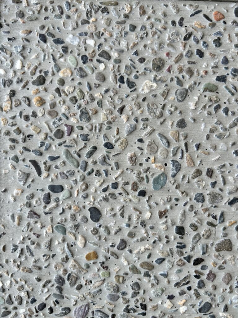 洗い出しは砂利を混ぜたモルタルを打設した後、その名の通り表面を水で洗い流し石の粒を浮きだたせる仕上げ方です。